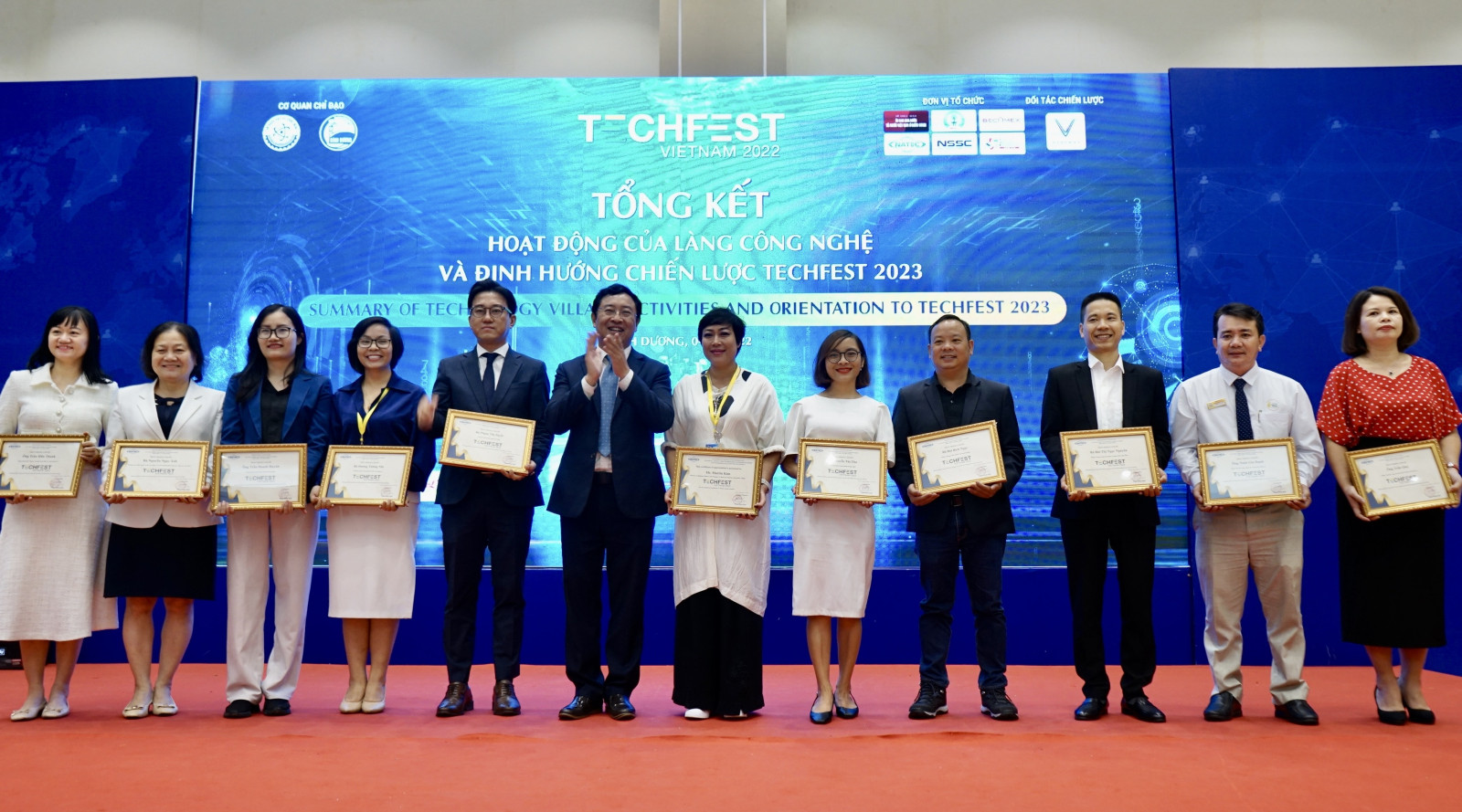 Tại buổi “Tổng kết hoạt động của Làng Công nghệ và Định hướng chiến lược Techfest 2023”, Trường ĐH Nguyễn Tất Thành đại diện cho Làng Tư duy thiết kế đổi mối sáng tạo và ThS. Huỳnh Hồng Mai – Phó Giám đốc Trung tâm Sáng tạo và Ươm tạo Khởi nghiệp NTTU – Đồng Trưởng Làng Xây dựng và phát triển cộng đồng Techfest 2022 vinh dự đón nhận bằng khen về việc “Đóng góp tích cực trong hành trình xây dựng hệ sinh thái đổi mới sáng tạo Quốc gia” do Cục Phát triển Thị trường và Doanh nghiệp Khoa học và Công nghệ – Bộ Khoa học và Công nghệ trao tặng.