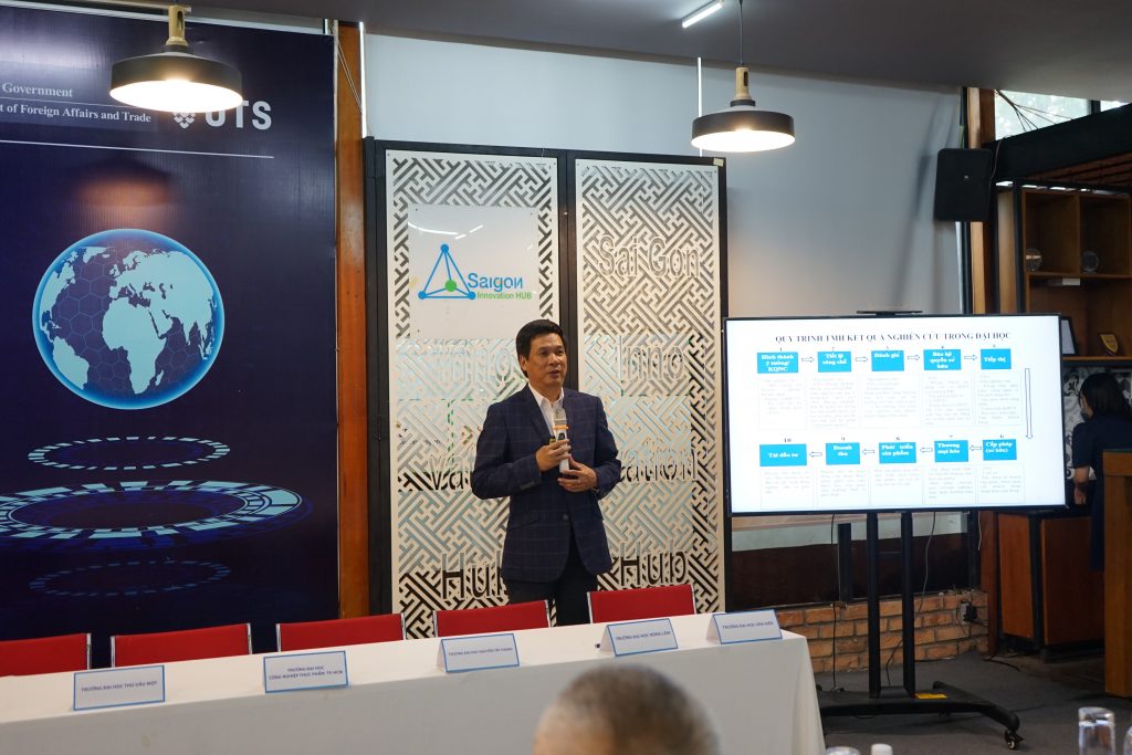 Phát biểu khai mạc, ThS. Huỳnh Kim Tước – CEO Sihub đã chia sẻ về tầm quan trọng của việc chuyển giao công nghệ trong trường đại học để thúc đẩy sự phát triển của những nghiên cứu công nghệ và mở ra cơ hội để dự án có thể gặt hái được nhiều thành công hơn. Cùng với đó là những chia sẻ quý báu về những kinh nghiệm của ông trong hơn 30 năm làm việc trong lĩnh vực này.