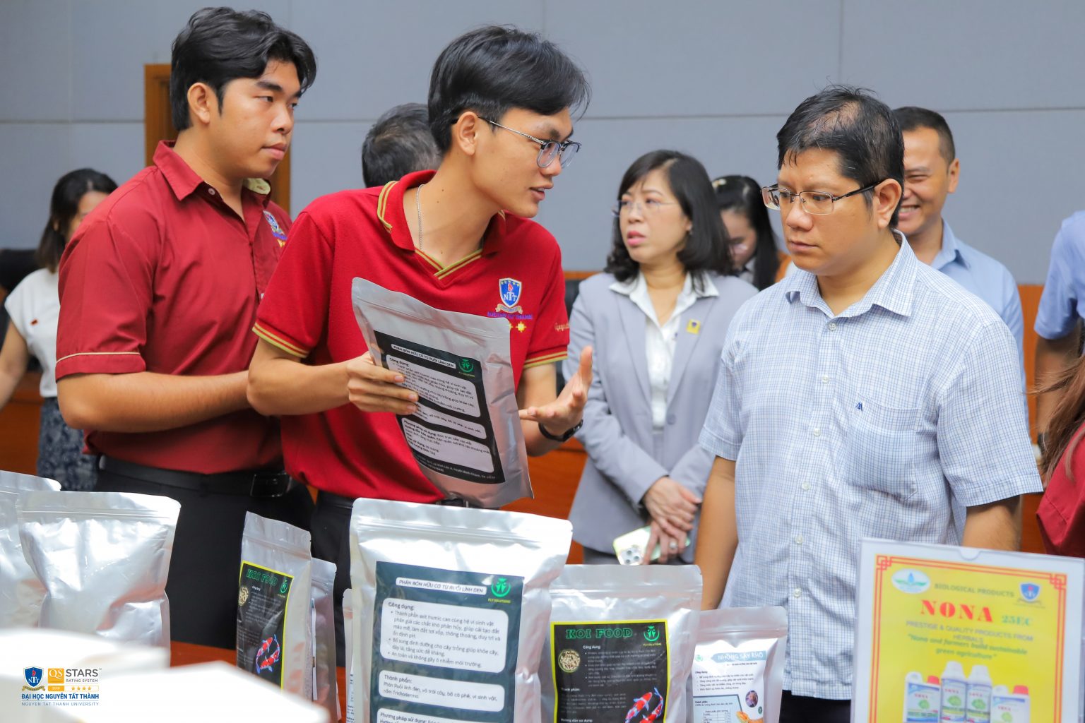 Cũng trong khuôn khổ sự kiện đã diễn ra Triển lãm sản phẩm Khởi nghiệp Đổi mới sáng tạo và nghiên cứu khoa học của cán bộ, giảng viên – sinh viên NTTU. Đó là những sản phẩm phát triển từ những ý tưởng đổi mới sáng tạo của cán bộ, giảng viên và sinh viên NTTU như: Bộ sản phẩm SOFa ứng dụng trong hệ thống nông nghiệp tuần hoàn và Sản phẩm ứng dụng ruồi lính đen vào nền nông nghiệp tuần hoàn Fly Bio – Ngành Công nghệ Sinh học; Sản phẩm tinh dầu, sáp thơm, xà phòng, mỹ phẩm và phân bón hữu cơ sản xuất từ ứng dụng vỏ trái cam sau khi lấy nước Q-Green – Khoa Dược. Cùng với đó là các dự án đã đạt giải Nhì tại cuộc thi “Học sinh, sinh viên với Ý tưởng khởi nghiệp” (SV_STARTUP) lần thứ 5 năm 2023 là Sản phẩm Trà tiêu độc Comtido – Khoa Dược. Đây là dự án đã đạt Giải Nhất cuộc thi Sinh viên với ý tưởng khởi nghiệp năm 2021; Giải Nhất Cuộc thi Truyền thông dự án Sinh viên với ý tưởng khởi nghiệp – đổi mới sáng tạo năm 2021; Giải Ba cuộc thi Sinh viên nghiên cứu khoa học lần 1 năm 2022 và đã được chuyển giao công nghệ sản xuất thành công với Công ty Life Gift VN; … Bên cạnh đó là một số những sản phẩm khác đến từ khoa/viện của Trường Đại học Nguyễn Tất Thành như sản phẩm Sơn nước graphene đang được thử nghiệm tại Công ty sơn Việt Nhật. Với sự hỗ trợ của Công ty sơn Việt Nhật, viện kĩ thuật công nghệ cao, ĐH Nguyễn Tất Thành đã triển khai dự án nghiên cứu hai hệ sơn nội thất và ngoại thất đang được thử nghiệm rất thành công. Bằng việc phối trộn graphene vào thành phần của sơn nước kì vọng làm tăng đồ cứng, độ bền và độ tản nhiệt của màng sơn.
