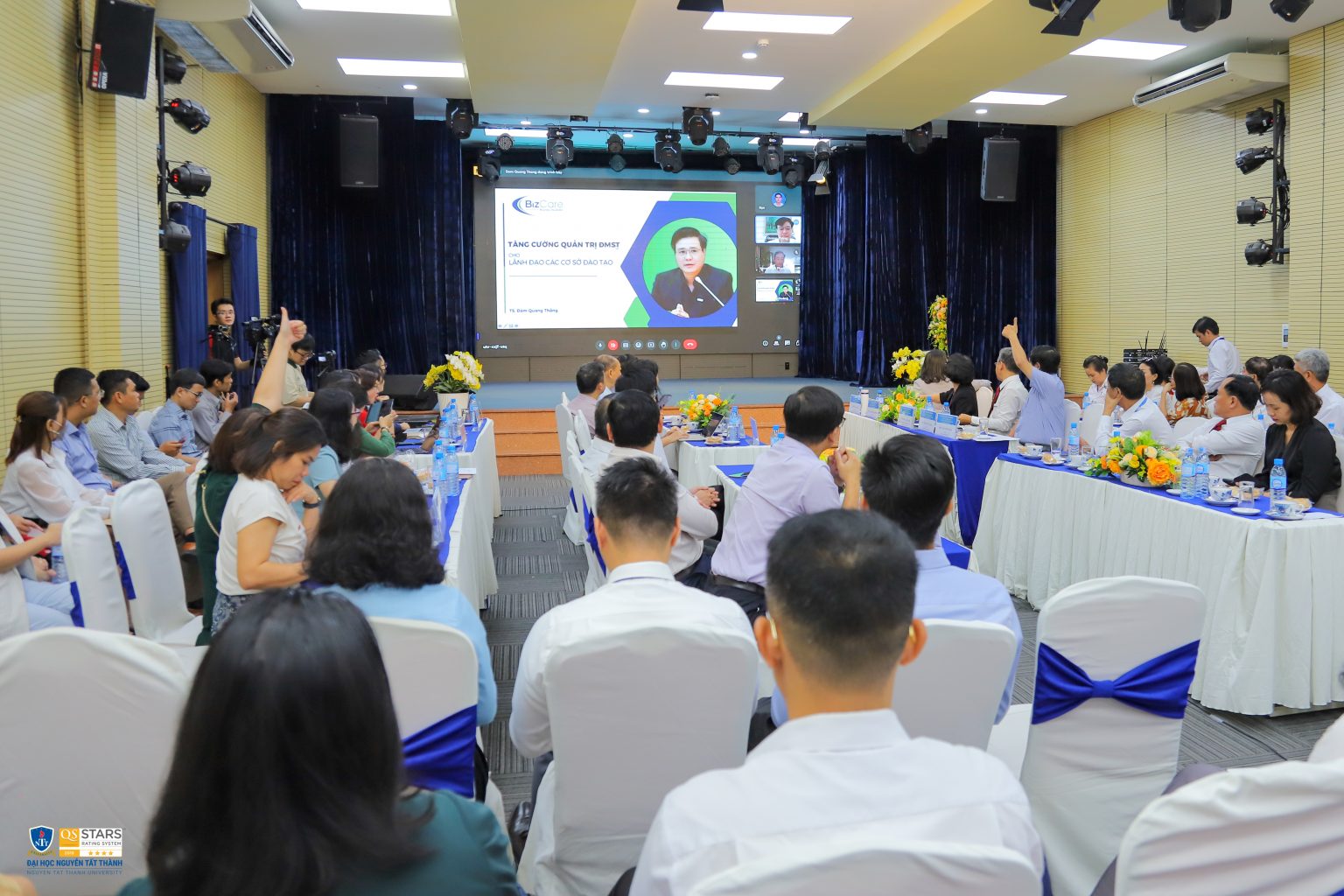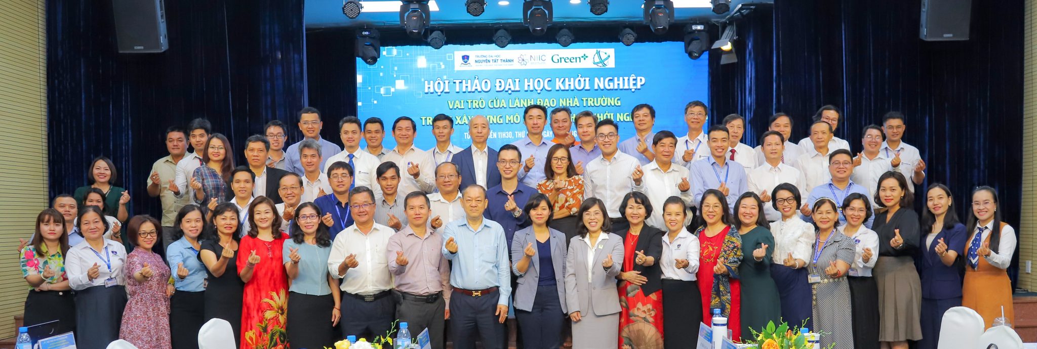 NTTU – Sáng ngày 12/5/2023, tại Hội trường A801 Trường Đại học Nguyễn Tất Thành – Cơ sở Quận 4, Trường Đại học Nguyễn Tất Thành phối hợp cùng Sở Khoa học và Công nghệ TP.HCM và Công ty cổ phần Tập đoàn Green + tổ chức chương trình Hội thảo Đại học khởi nghiệp với chủ đề: “Vai trò của lãnh đạo nhà trường trong Xây dựng mô hình đại học khởi nghiệp” nhằm chào mừng ngày Khoa học và Công nghệ Việt Nam (18/5/1963-18/5/2023) qua đó chia sẻ những thông tin liên quan đến vai trò của Lãnh đạo Nhà trường trong việc trong dẫn dắt hoạt động đổi mới sáng tạo và kinh nghiệm xây dựng mô hình hệ sinh thái khởi nghiệp trong trường Đại học. Chương trình được tổ chức với hai hình thức trực tiếp và trực tuyến thông qua ứng dụng Zoom.