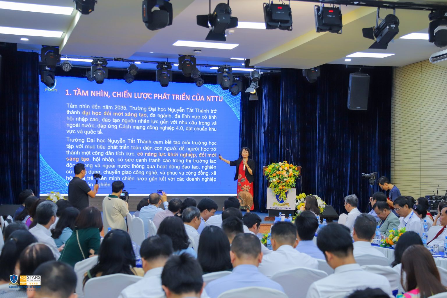 Phát biểu tại chương trình, TS. Trần Ái Cầm – Hiệu trưởng Nhà trường, cho biết: “ Hội thảo hôm nay sẽ là một hoạt động thiết thực và ý nghĩa quan trọng để cùng nhìn nhận xu hướng mô hình quản trị đại học trong giai đoạn mới cùng với đó là vai trò của các nhà lãnh đạo trường đại học trong việc định hướng tầm nhìn và cam kết triển khai. Thông qua hội thảo, các chuyên gia giàu kinh nghiệm trong lĩnh vực khởi nghiệp, đổi mới sáng tạo có cơ hội chia sẻ những vấn đề về mô hình trường đại học khởi nghiệp để cùng hiểu rõ hơn, cùng nhau xây dựng hệ sinh thái khởi nghiệp ngày càng phát triển theo chiều hướng tốt đẹp hơn. Hội thảo hôm nay cũng là một trong những chương trình hành động thiết thực nhất đóng góp vào những giá trị về sứ mạng mà Trường ĐH Nguyễn Tất Thành đã công bố”.