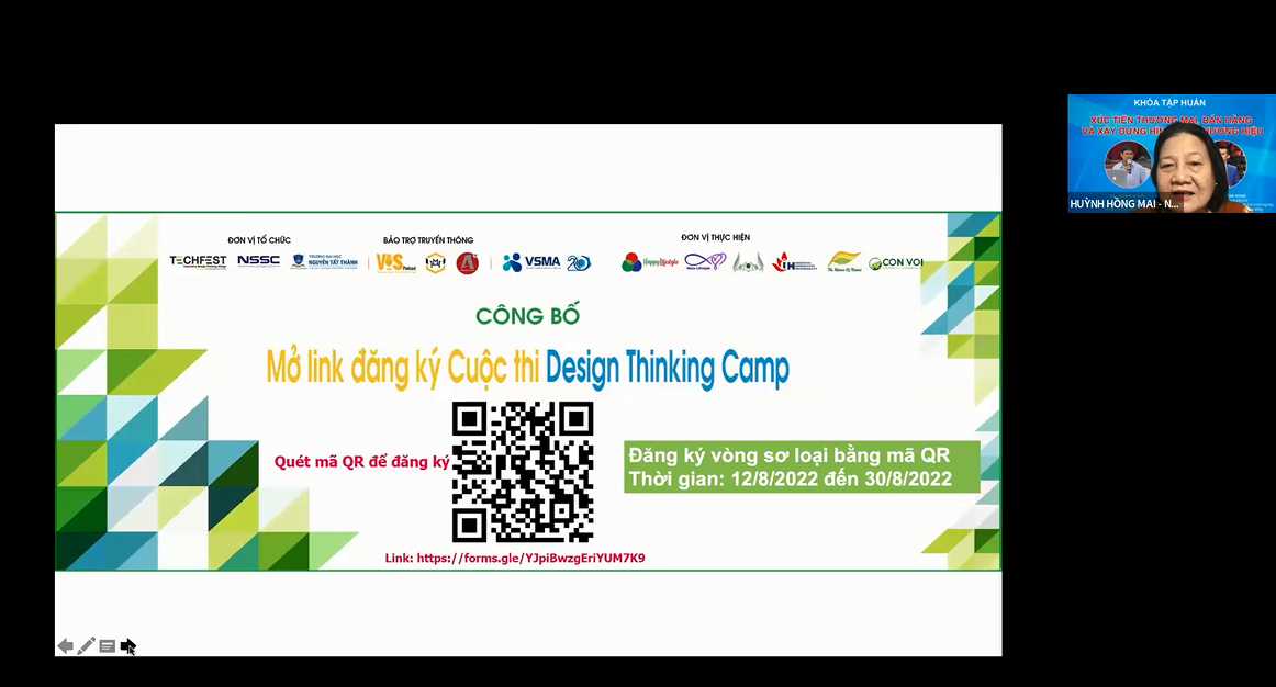 NTTU- Vừa qua, Trung tâm Sáng tạo và Ươm tạo khởi nghiệp phối hợp Đoàn trường với sự đồng hành của Sở Khoa học Công nghệ, Làng Xây Dựng và Phát Triển Cộng Đồng, Làng Tư Duy Thiết Kế Đổi Mới Sáng Tạo đã tổ chức lớp tập huấn “Xúc Tiến Thương Mại, Bán Hàng Và Xây Dựng Hình Ảnh Thương Hiệu” cho Sinh Viên Năm 2022 trực tuyến trên nền tảng Zoom.