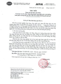 Phòng KHCN kính gửi Quý Thầy/ Cô thông tin Hội thảo giới thiệu “Các loại van đa chức năng ứng dụng công nghệ mới và hệ thống bình phun sương khô điều hòa nhiệt độ không khí phòng”, vào lúc 8g30 ngày 14 tháng 04 năm 2017 tại địa chỉ 79 Trương Định, Phường Bến Thành, Quận 1, thành phố Hồ Chí Minh.