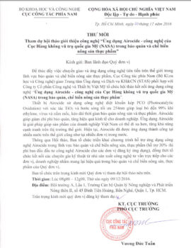 Phòng KHCN kính gửi Quý Thầy/ Cô thông tin và thư mời tham dự Hội thảo Ứng dụng Airocide trong bảo quản và chế biến nông sản thực phẩm tổ chức tại Tp.HCM ngày 09/12/2016